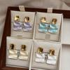 European and American personality ins small fragrance irregular square drop glaze earclips light luxury high-end geometric earrings earrings women