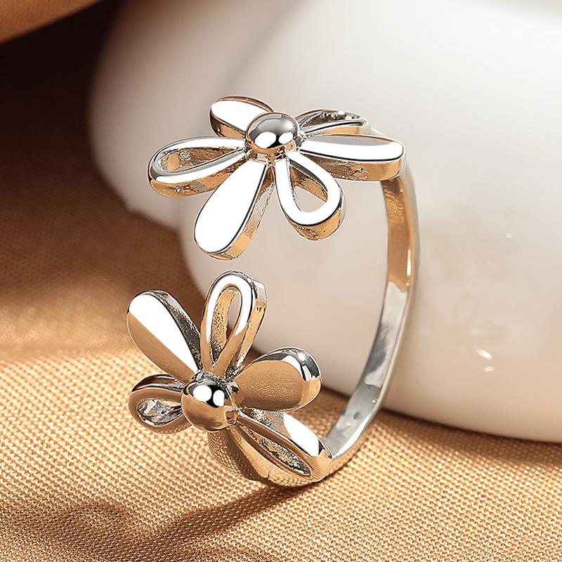 2026 Retro Plain Ring Flower Ring Women's Light Luxury Exquisite High Sense Fashion Versatile Opening Adjustable Index Finger Ring