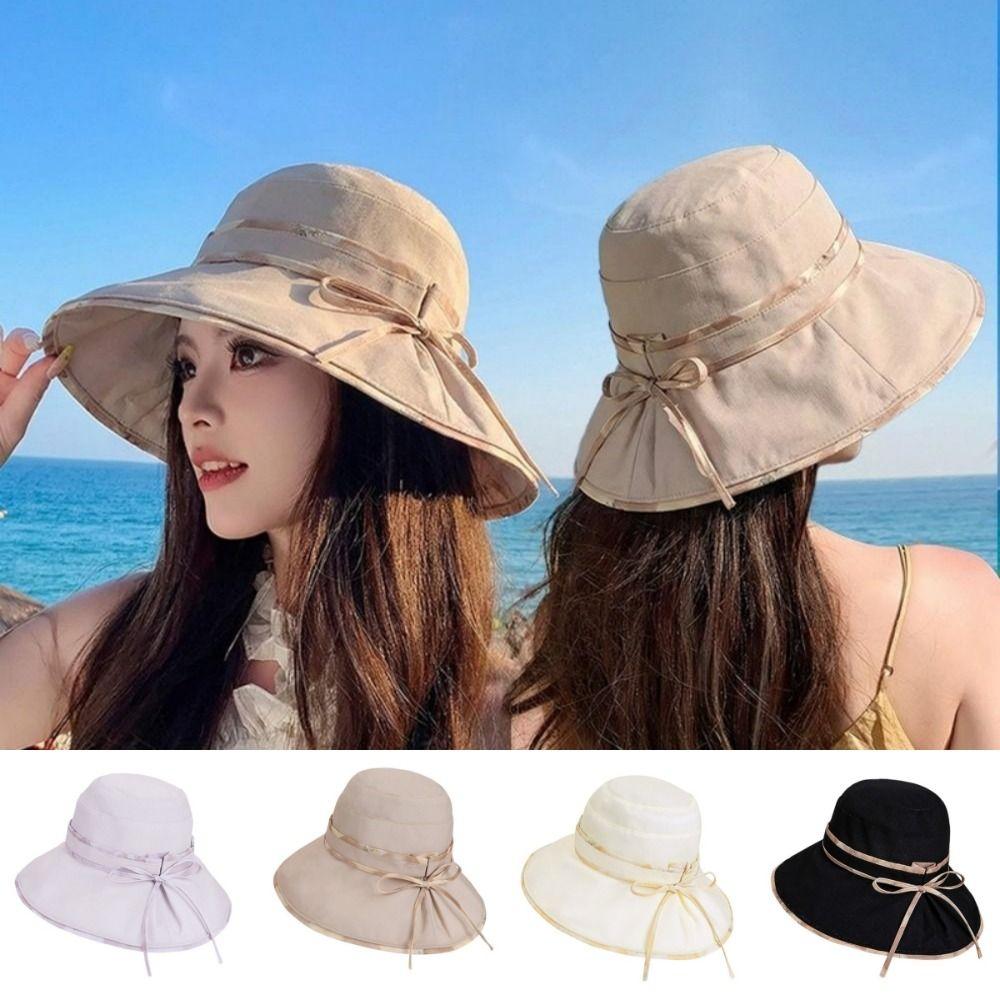 Bowknot Decor Fisherman Hat Lace-up Design Sunshade Hat New Girls Basin Caps Beach Activities