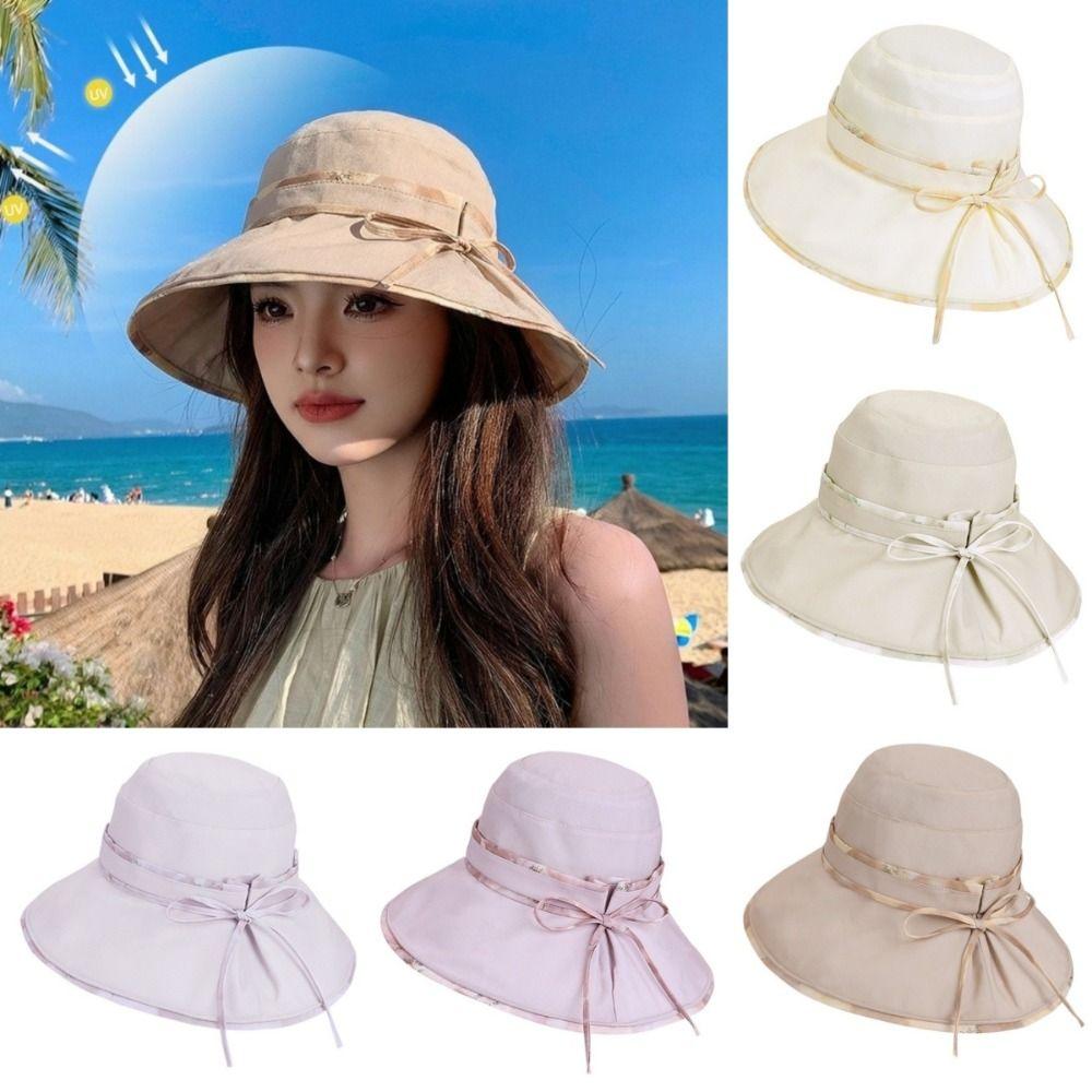 Lace-up Design Bucket Caps 10cm Large Brim Sunshade Hat New Girls Basin Caps Beach Activities