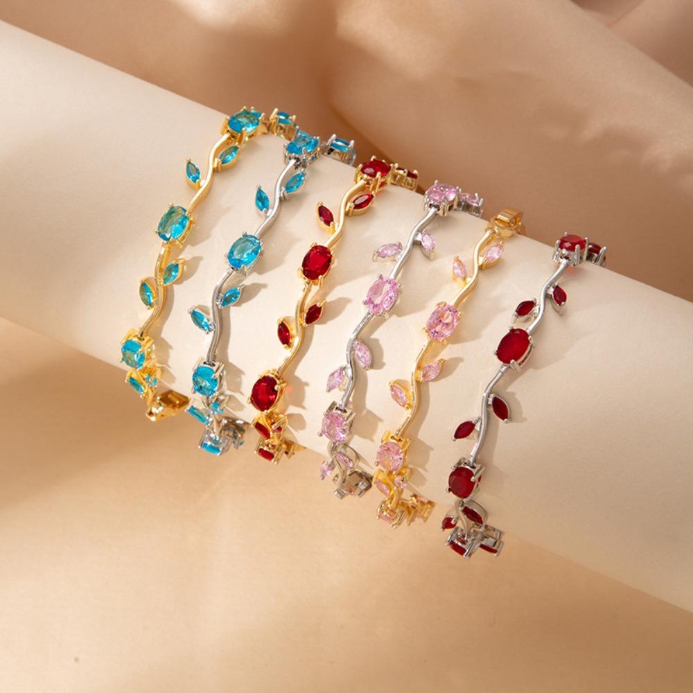 Luxury Sparkling Leaf Chain Gold Silver Color Crystal Sparkling Leaf Bracelets Jewelry Gift