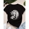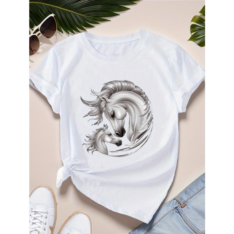 European Size Women's Plus Size Short Sleeve Round Neck Simple Horses Print Graphic T-shirt, Women's Sportswear & Clothing