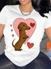 European Size Women's Cute Puppy Dog Print T-Shirt - Short Sleeve Round Neck Casual Blouse with Adorable Heart & Paw Print Dog Pet Lover Top