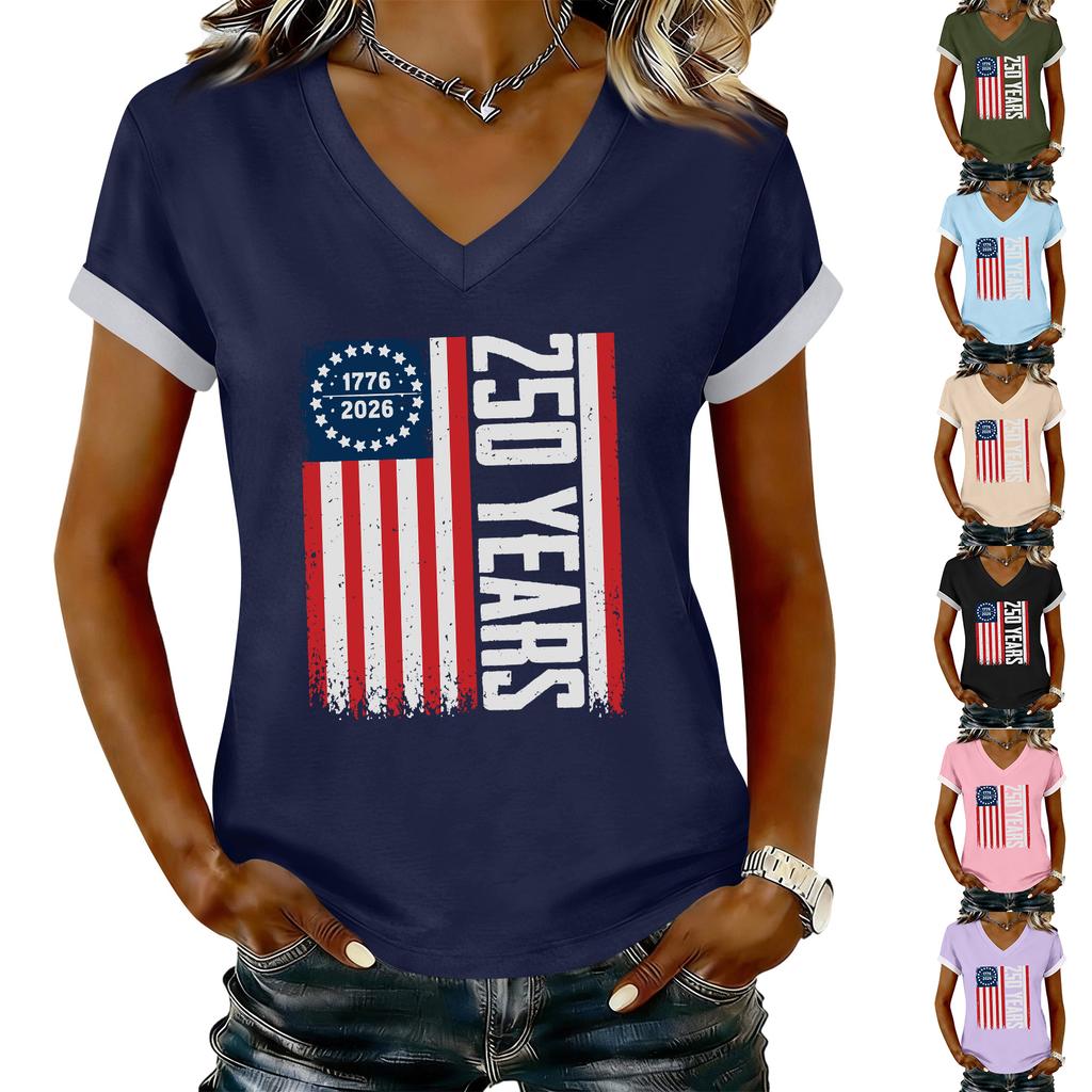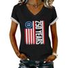 Women's Casual Printed T-Shirt V Neck Pullover Short Sleeve Top