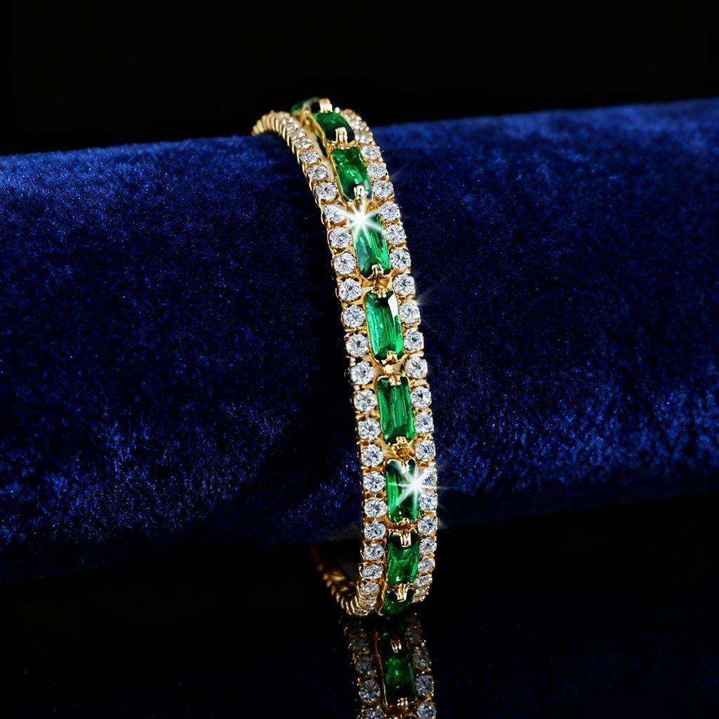 Three rows of tennis chain bracelet men's and women's fashion full of diamond green zircon bracelet jewelry