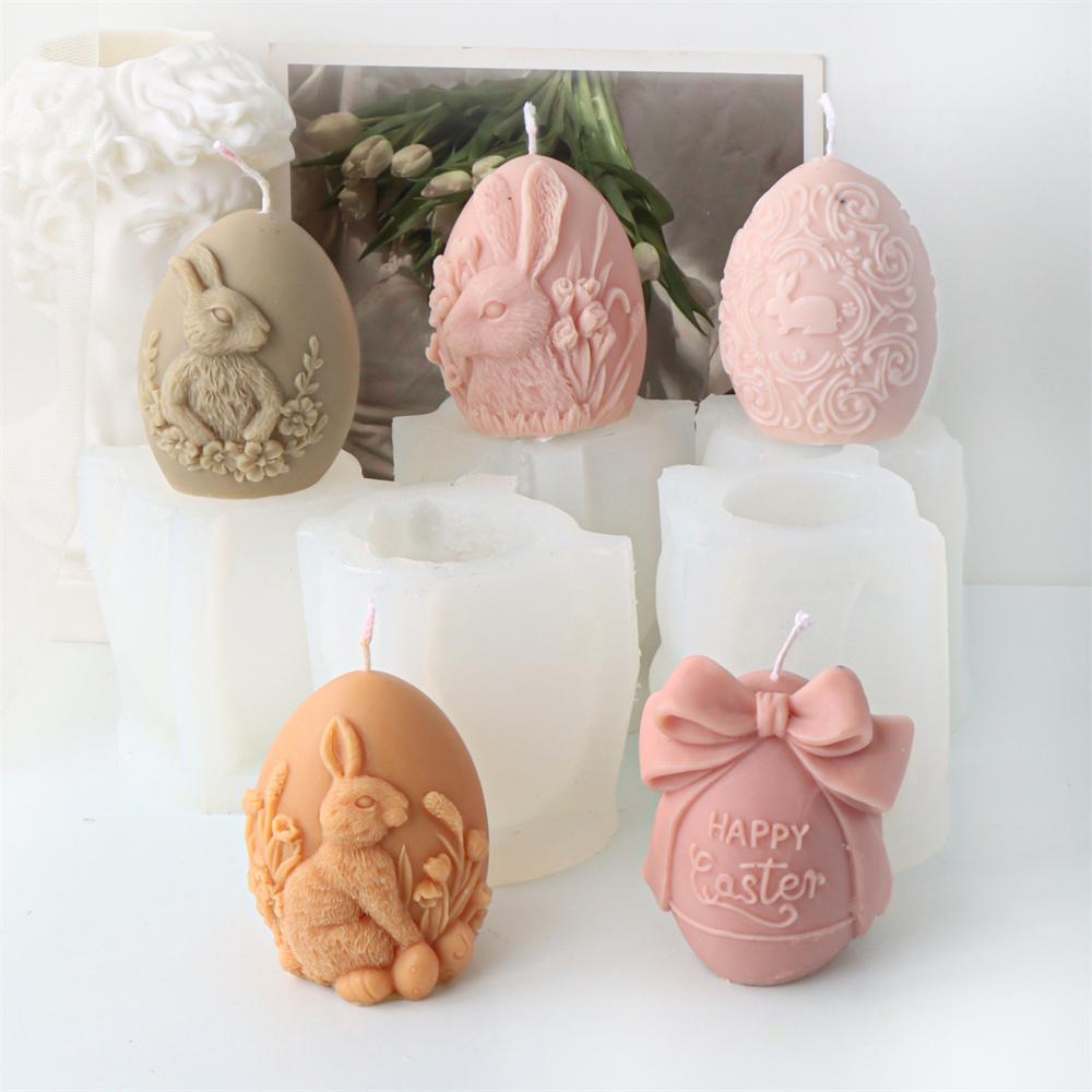 Handmade Silicone Easter Bunny Egg Candle Mold DIY 3D Easter Bowknot Egg Candle Mold Perfect Candle Soap Plaster Creations