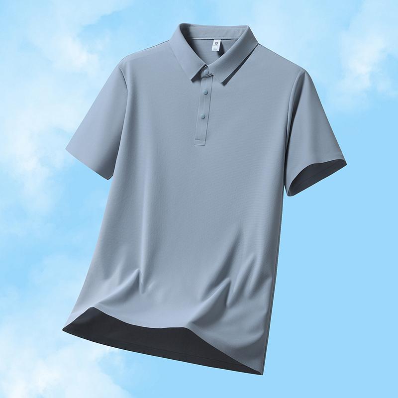 Men's Short Sleeve Polo Shirt, Light Gray Ice Silk Casual Top, Quick Dry Lightweight Performance Shirt for Summer Daily Wear