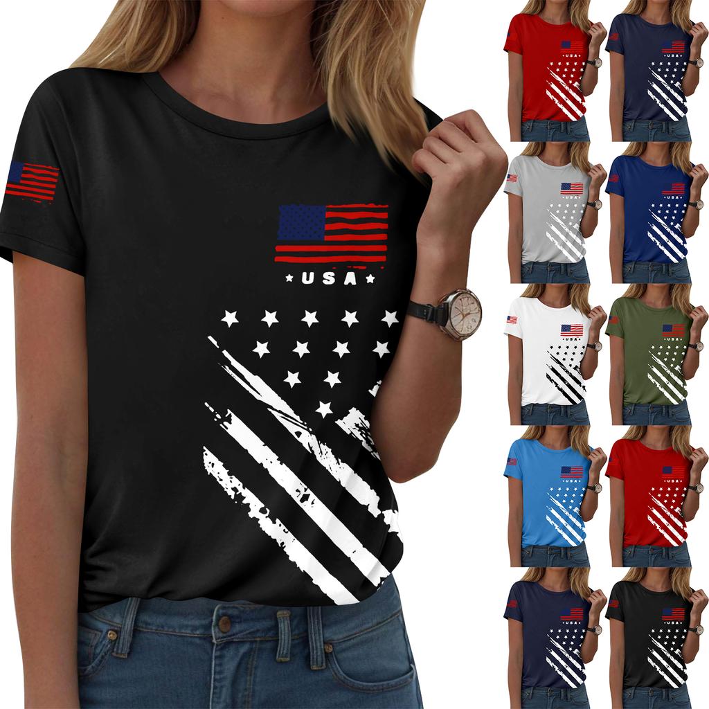 Women's Casual Printed T-Shirt Round Neck Pullover Short Sleeve Top