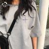 Tricou de damă din bumbac pur, cu croială largă, mânecă scurtă și grafică cu vârf de pix