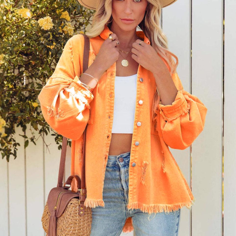 2025 European & American Style Distressed Ripped Denim Jacket for Women