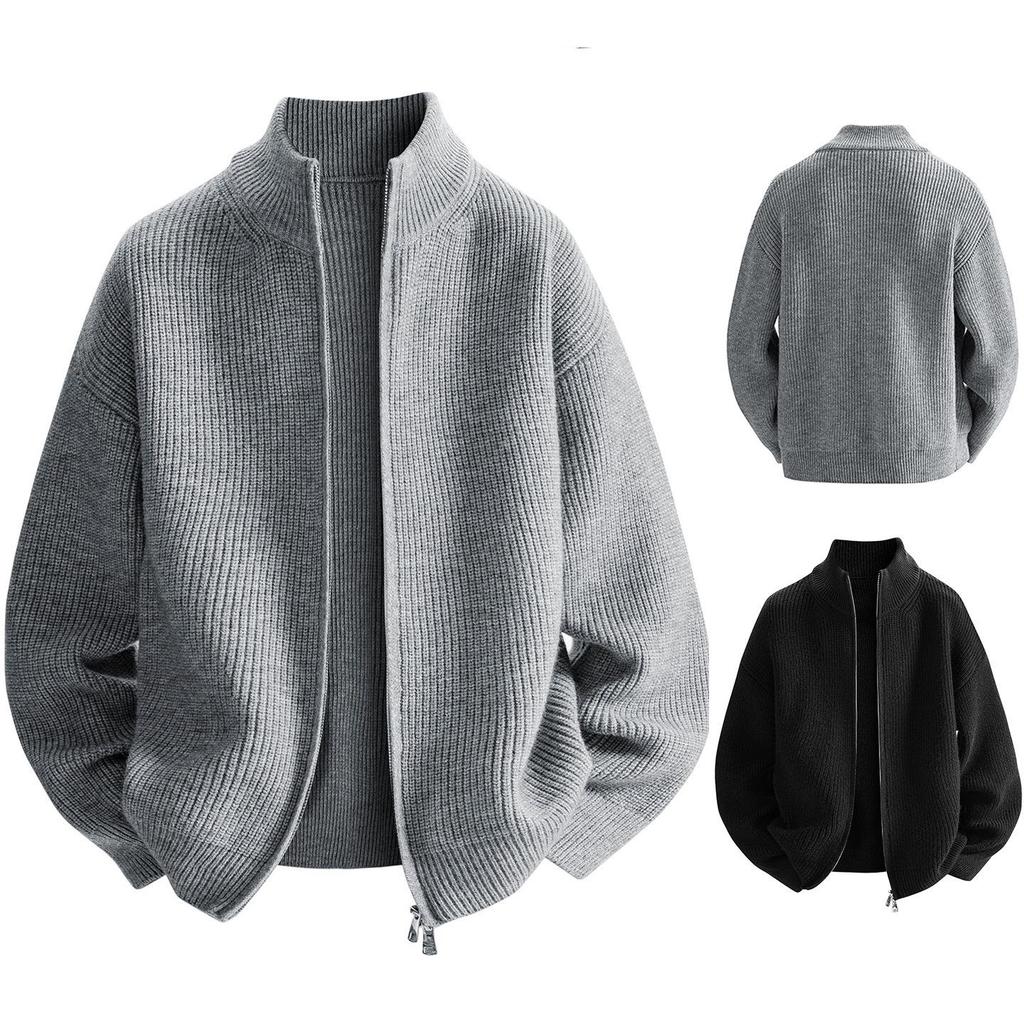 This men's cardigan sweater is a stylish winter essential, featuring a modern stand collar and a comfortable loose fit. Designed with long sleeves, it offers a cozy feel while maintaining a thin profile, making it perfect for layering. The solid color design adds a touch of sophistication, and the zipper closure ensures ease of wear. Crafted from durable polyester material with a chemical fiber blended fur lining, this sweater combines functionality with contemporary fashion. Ideal for those seeking a trendy yet practical addition to their cold-weather wardrobe.