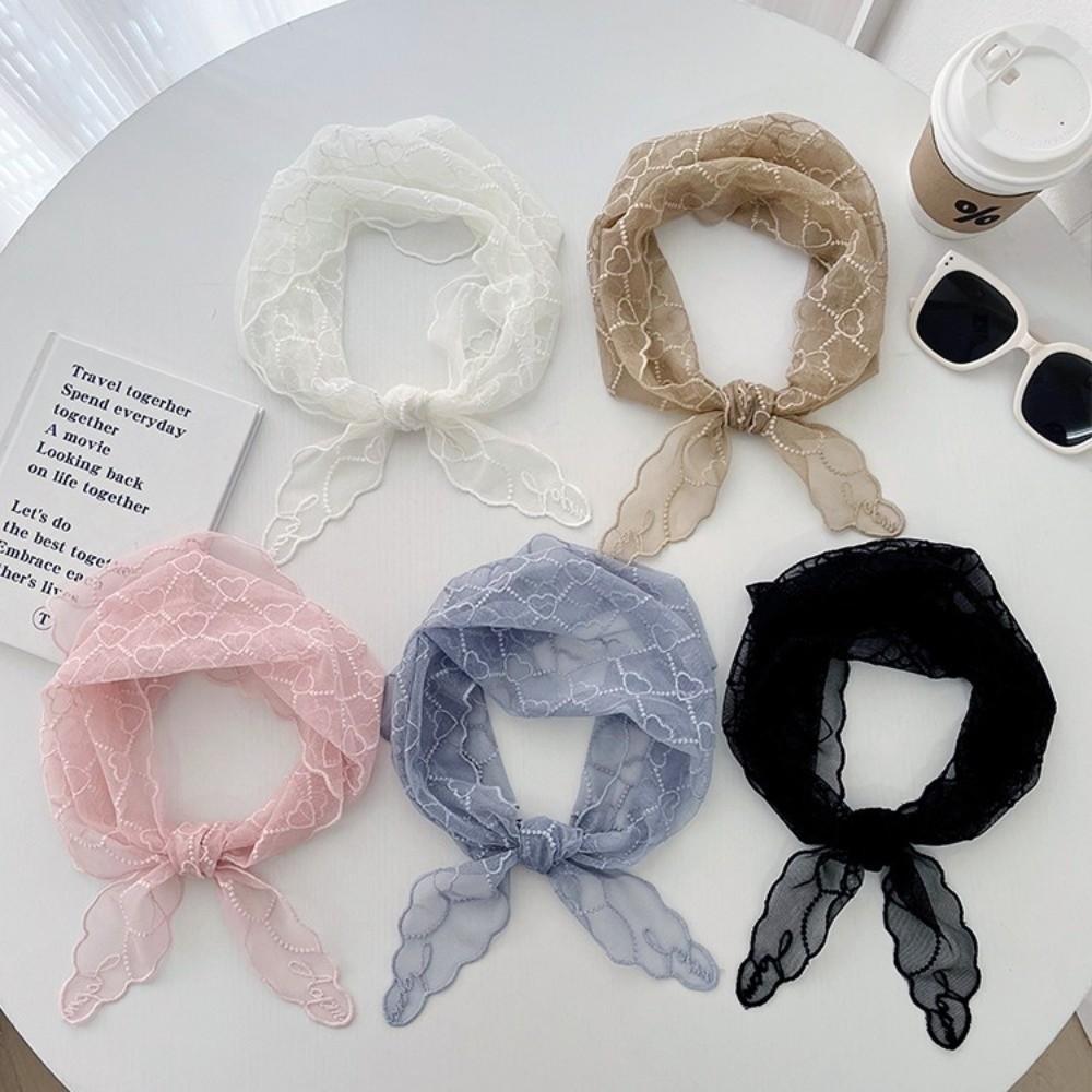 Heart Pattern Triangular Scarf Retro Hair Ribbon Versatile Lace Scarf Women's Accessory