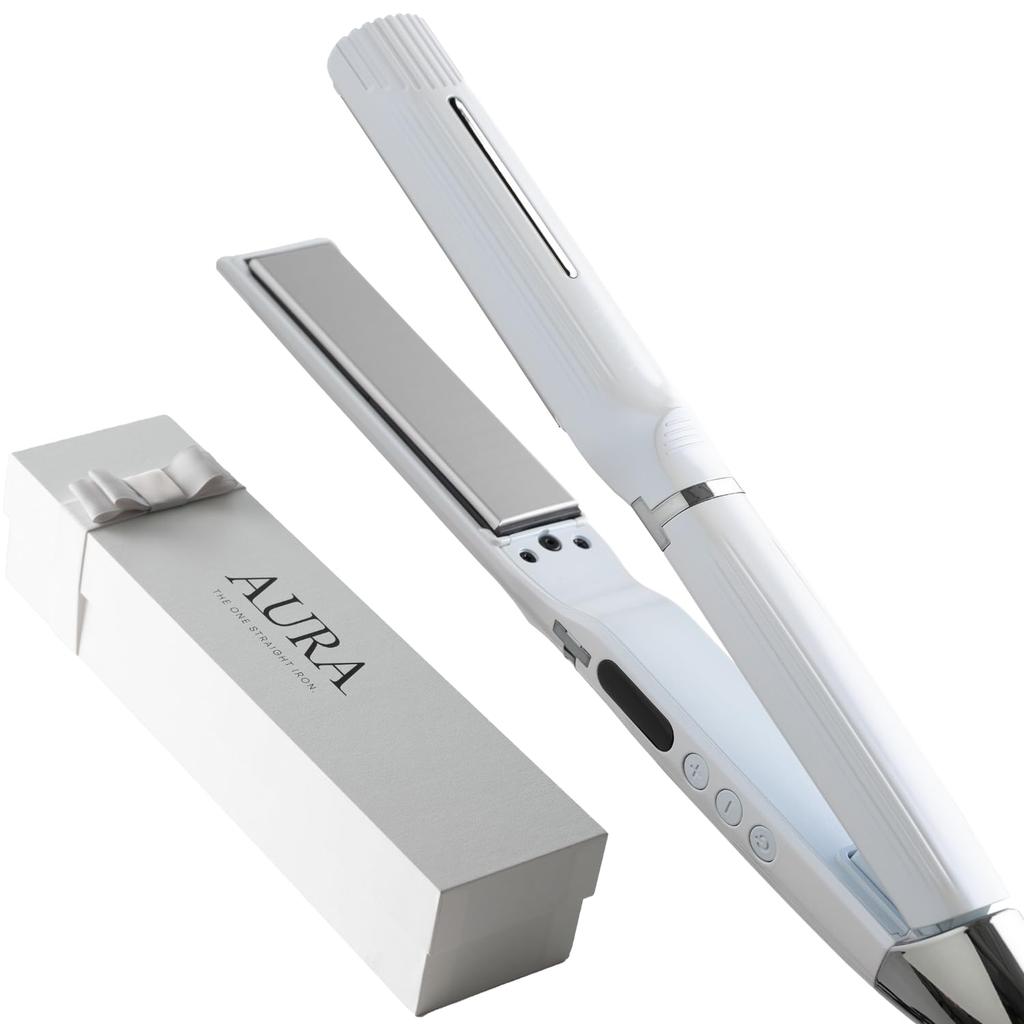 AURA Professional Hair 24mm Cashmere 18 Temperature Up to in 30 Dry White Straightener, Plates, Settings, 220°C Seconds, Brown, Hair, Anti-Static,