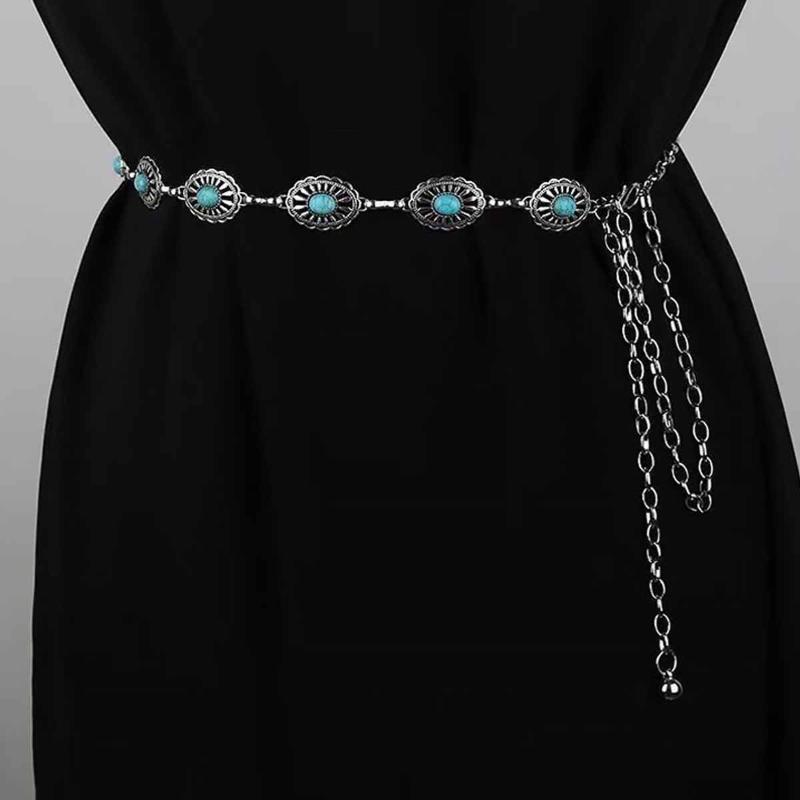 Fashion Bohemian Female Circular Waist Chain Luxury Turquoise Ellipse Chain Belt For Women Suitable For Skirts Dress