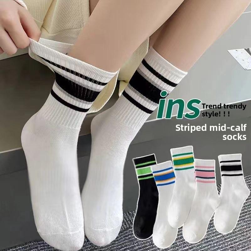 2026 Striped Crew Socks Cotton Korean Style Streetwear Casual Sport for Women Couples Fashion Mid Calf Socks