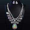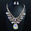 Fashion High-Grade Colourful Teardrop Female Bridal Crystal Full Diamond Necklace Earrings Two-Piece Set Exquisite