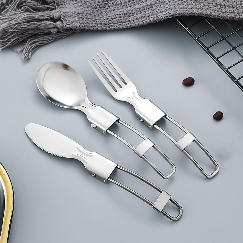Design pliabil creativ Set de veselă portabil pentru picnic în aer liber, pliabil, din oțel inoxidabil, lingură de salată, furculiță, betisoare, unelte de bucătărie