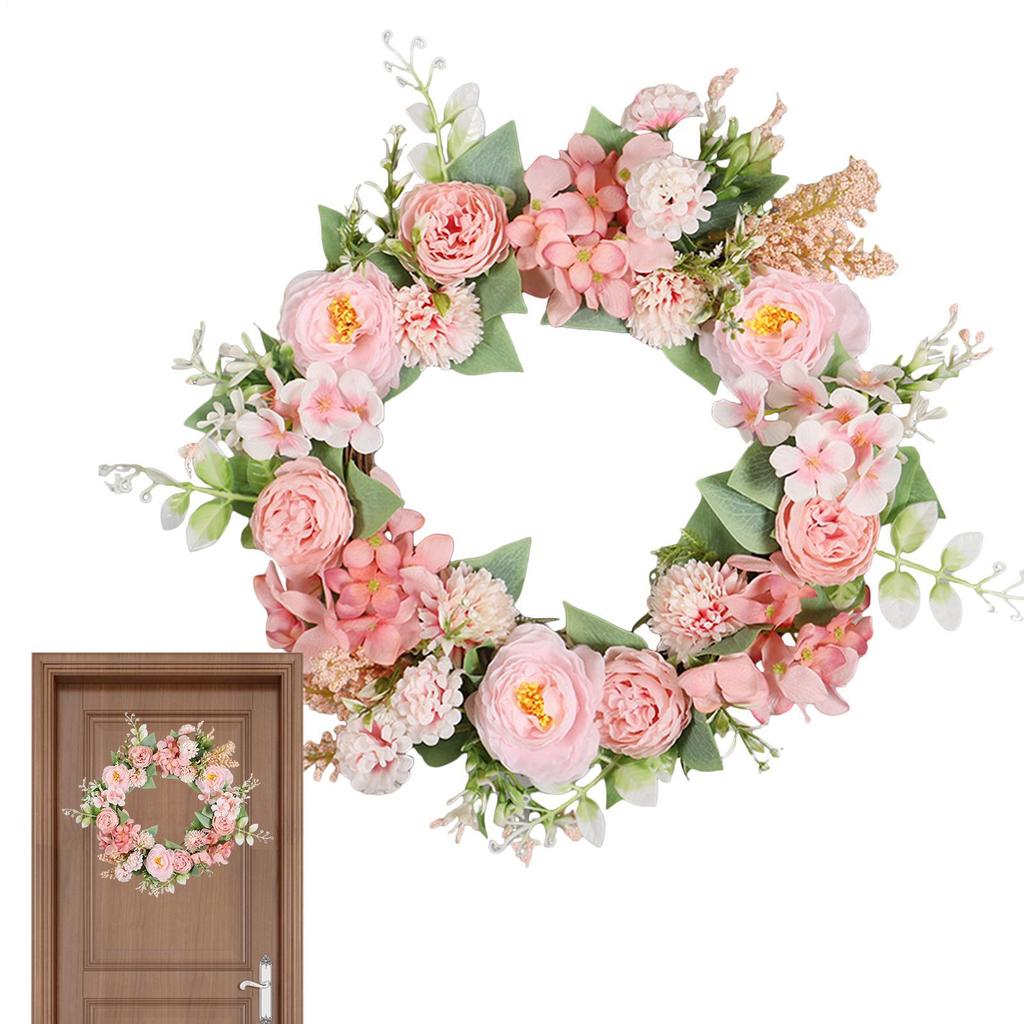 40cm Spring Door Wreath Simulated Peony Camellia Flower Wreath Artificial LED Light Colorful Festive Decoration For Home Holiday