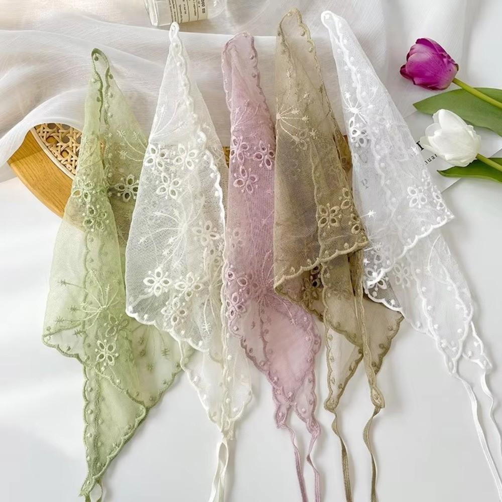 Vintage White Bandanas for Women Thin Sweet Headscarf Casual Lace Flower Hair Scarf Pastoral Style
