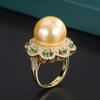 2026 new European and American retro inlaid Austrian fritillary pearl inlaid with diamonds flower women's ring 16mm