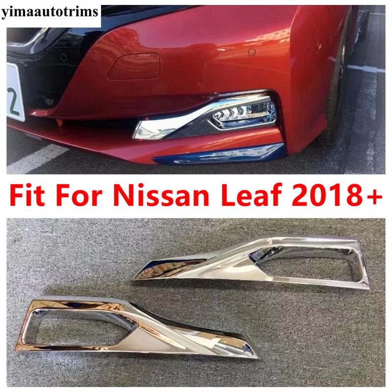 2PCS ABS Chrome Car Front Bumper Fog Foglight Light Lamp Frame Decor Cover Trim For Nissan Leaf 2018 - 2024 Accessories Exterior