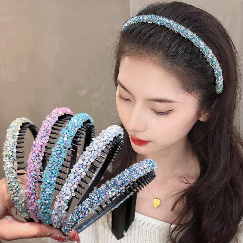 Pearl Rhinestones Antislip Hairband Thin Face Wash Hair Hoop Vintage Crystal Teeth Headband Makeup