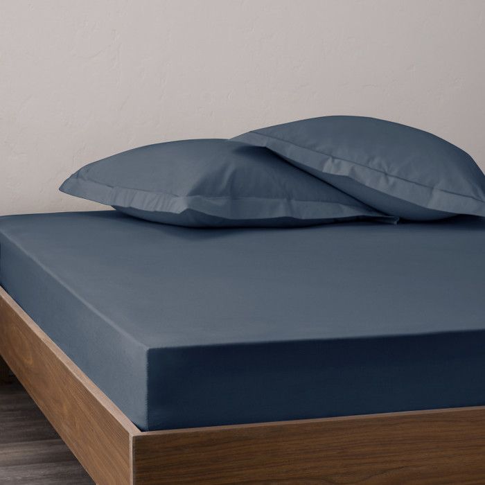 Drap housse percale "Julian" avec bonnet 35 cm toutes dimensions Coton Pur - Julian Bleu Encre - 200 x 200 cm bonnet de 35 cm