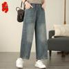 plus size Vintage high waist casual loose Women Spring summer autumn jeans denim wide leg Pants