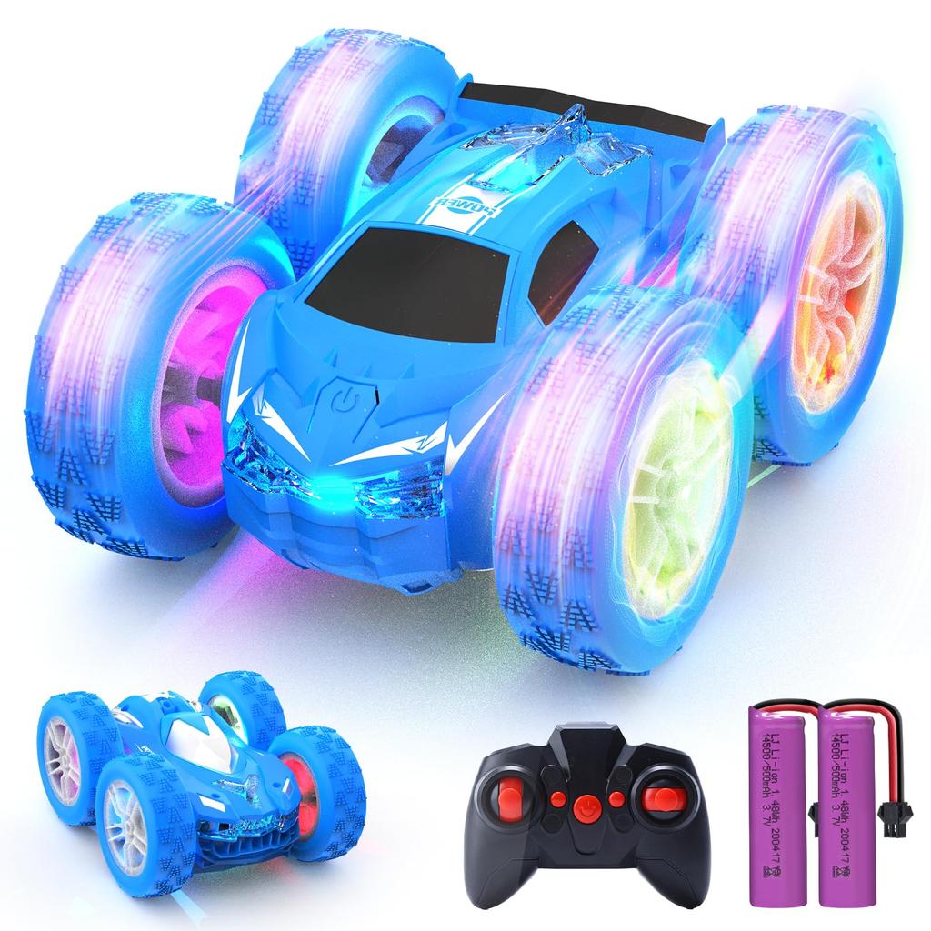 RC Stunt Car for 2 Speed 2 LED RC Birthday Certified in Kids, 4WD, Double-Sided Driving, 360-Degree Rotation, Control, Lights, 2.4GHz, Car, Toy, Boys'