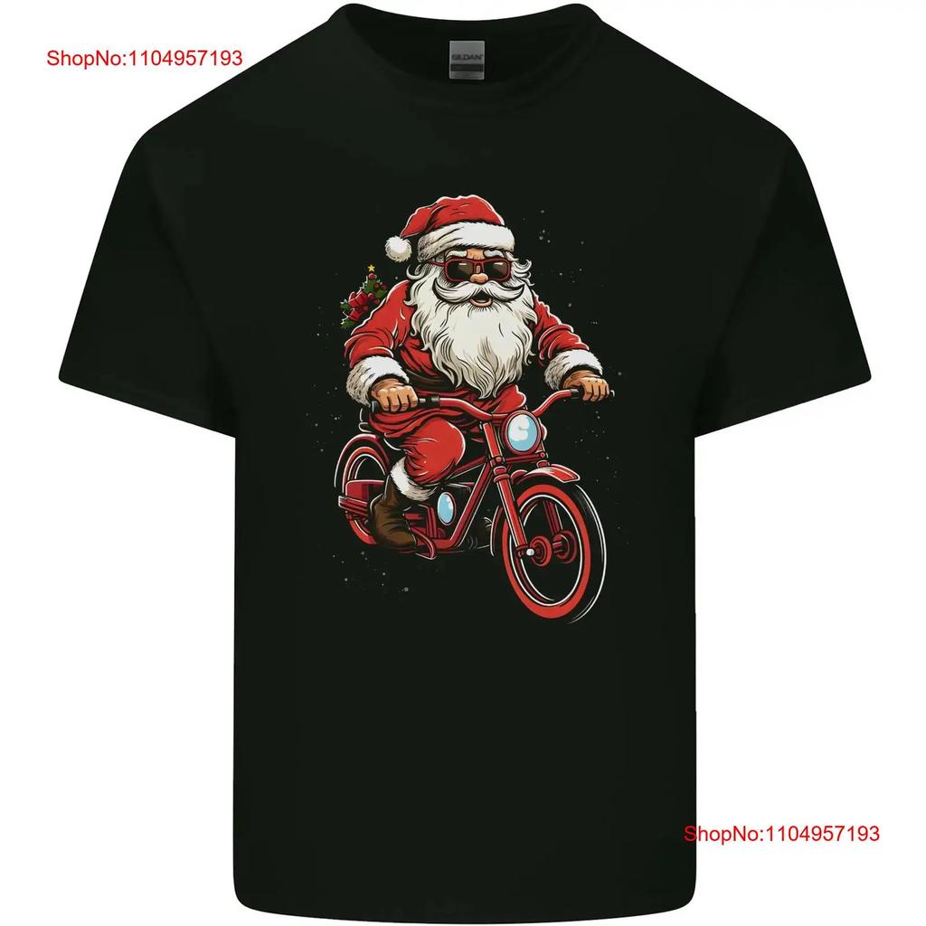 Christmas Cycling Santa Claus Bicycle Mens Cotton T Shirt Top vintage Washed Casual Versatile Comfortable Unisex Breathable