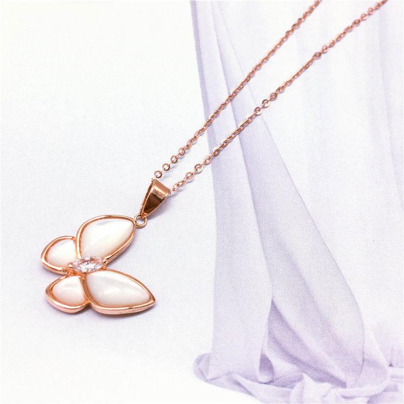 Exquisite Russian 585 Purple Gold Literary White Fritillary Butterfly Set Chain Foreign Color Gold Plated Rose Gold Necklace Women