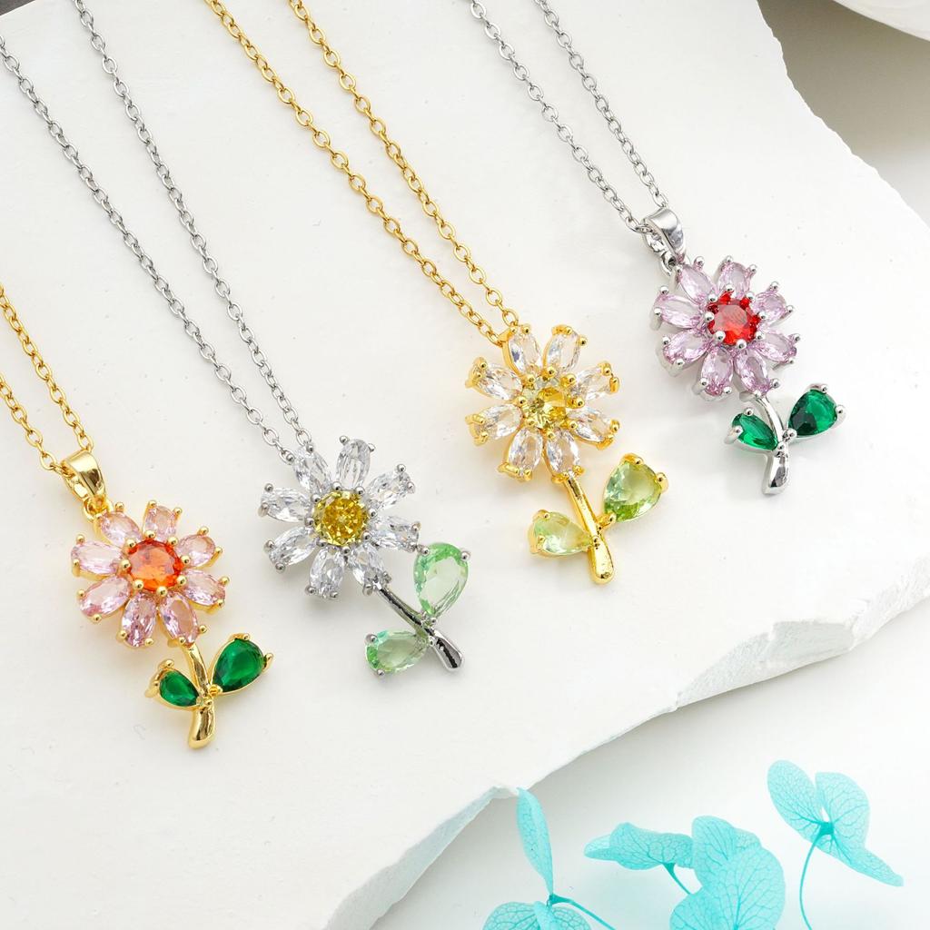 Fashion Sweet Zircon Sunflower Pendant Necklaces for Women Stainless Steel Chain Jewelry Accessories Wedding Party Gifts