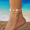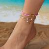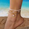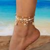 Vintage Gold Color Double Layer Anklet for Women Star Pearl Starfish Zircon Pineapple Anklets Bracelets Foot Chain Beach Jewelry