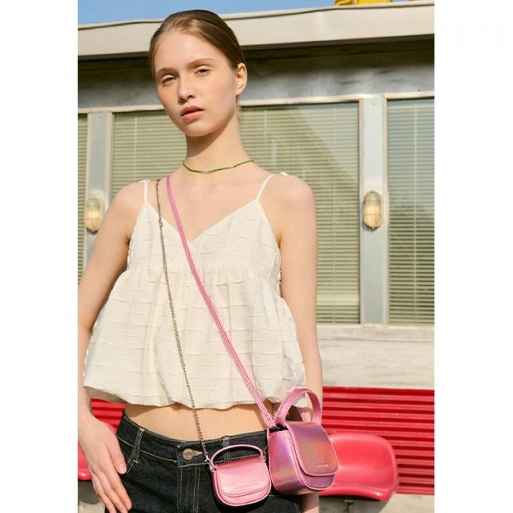 The AURORA MINI CHAIN BAG features a plain design with attractive point colors. It can be worn with a bag charm and used as a crossbody, making it a stylish storage option for small belongings. A perfect item to express a trendy bag-in style.