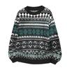 Pulover larg pentru bărbați cu gât rotund, cămașă de bază cu culoare geometrică contrastantă, pulover cu mânecă lungă, top de toamnă și iarnă