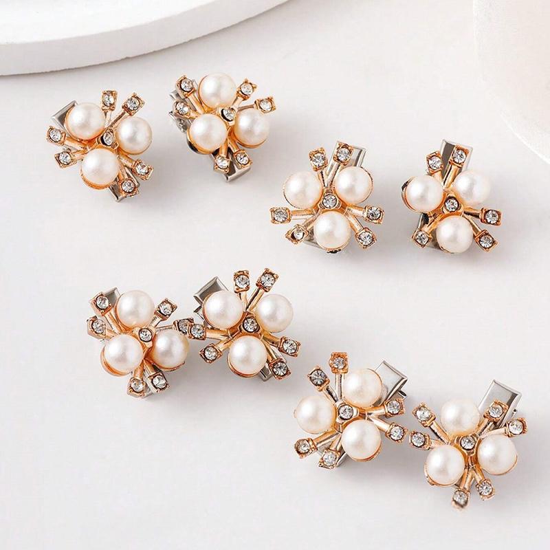 10Pcs Sparkling Flower-Shaped Crystal Pearl Button Pearl Hairpins Headwear Clip Rhinestone Buttons
