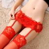 Suspender stockings women's fun thong set ultra-thin mood sexy hot bud black silk temptation long tube knee socks