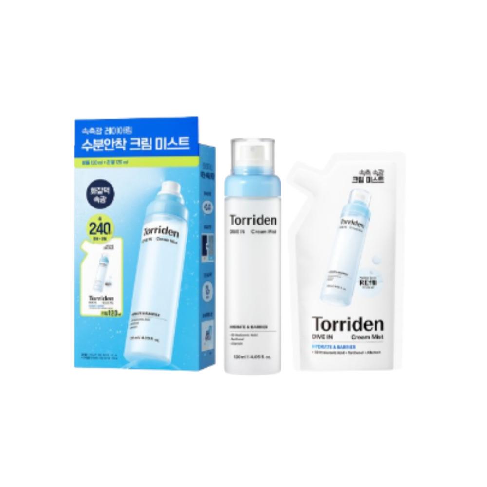 The Torriden Dive‑In Low Molecular Hyaluronic Acid Cream Mist is a lightweight, deeply hydrating mist that delivers multi‑layer moisture to dry and dehydrated skin. Infused with low molecular hyaluronic acid, this cream‑mist formula absorbs quickly, calms irritation, and helps strengthen the skin barrier. Perfect for daily hydration or as a refreshing pick‑me‑up during the day, this set includes a 120ml bottle plus a 120ml refill for extended use.