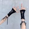 Lolita lace bow hand sleeve women's Japanese splicing ballet style ribbon strap sleeve cos sweet cool gloves