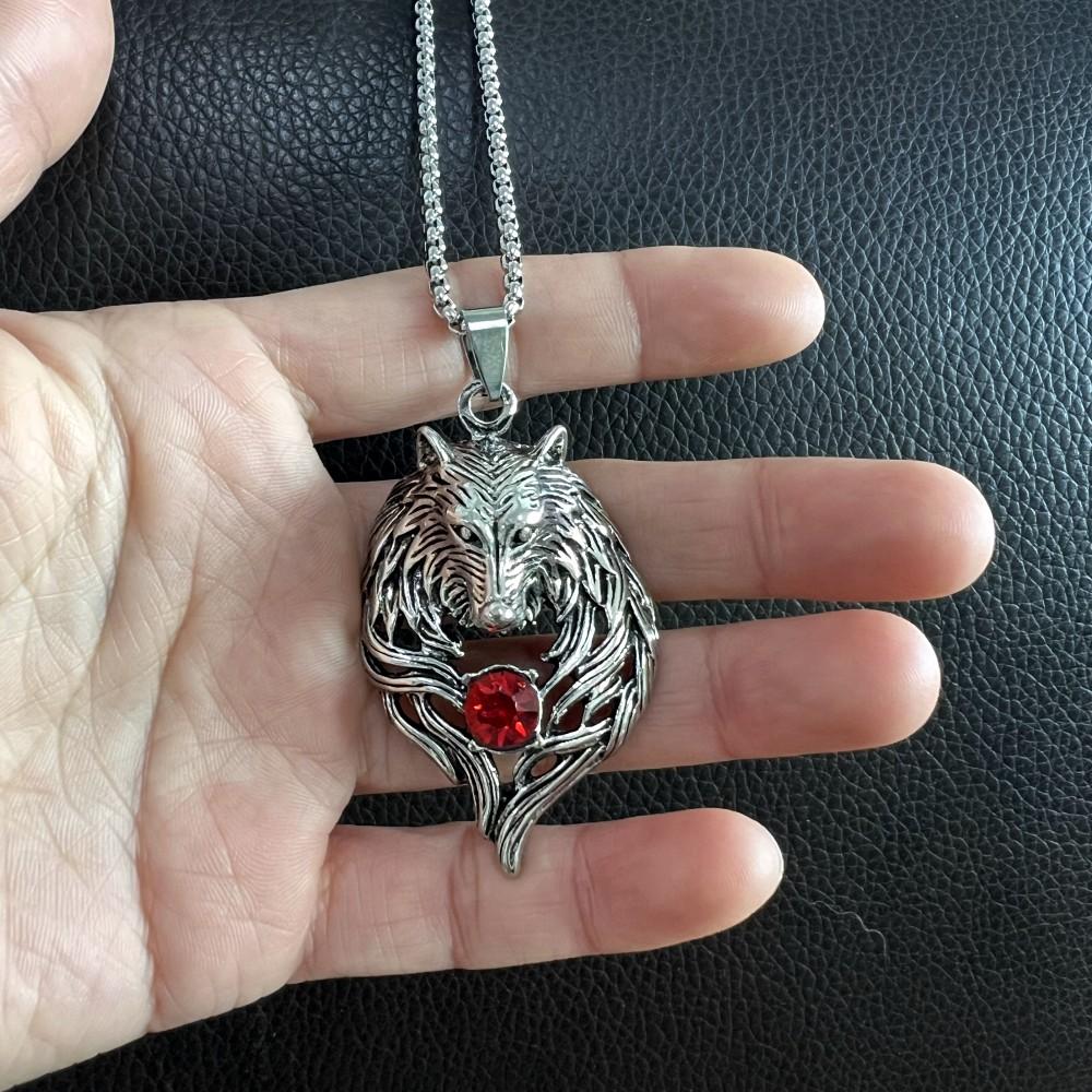 Viking wolf head necklace for men women trendy stainless steel chain pendant sweater chain accessory