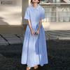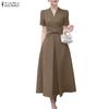 ZANZEA Women Casual Turn Down Collar Solid Color Loose Half Sleeve Dress