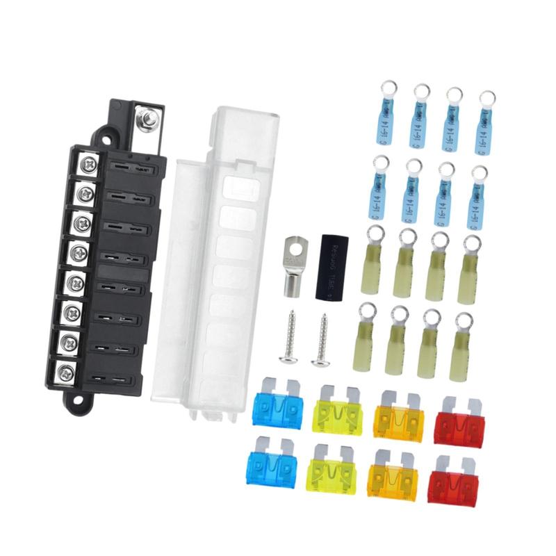 8 Way Fuse Box Heat Shrink Connector with Transparent Cover Blade Fuses Blade Fuse Block Holder for Yacht Automobiles
