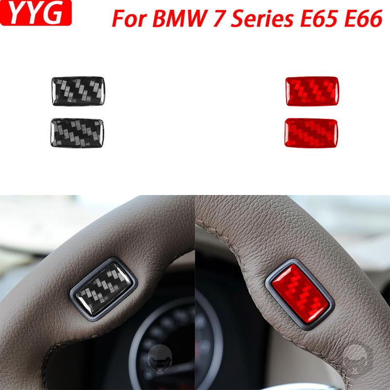 For BMW 7 Series E65 E66 2002-2008 Carbon Fiber Steering Wheel Button Panel Decorative Cover Interior Car Accessories Sticker