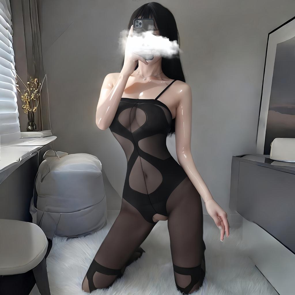 Sexy Transparent One-Piece Lingerie Open File Fishnet Stockings Woven Passionate Tempting No Need to Take off