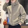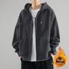 Cardigan din fleece cu glugă, de culoare solidă pentru bărbați - Jachetă groasă, cu croială largă, cu fermoar, pentru toamnă și iarnă.