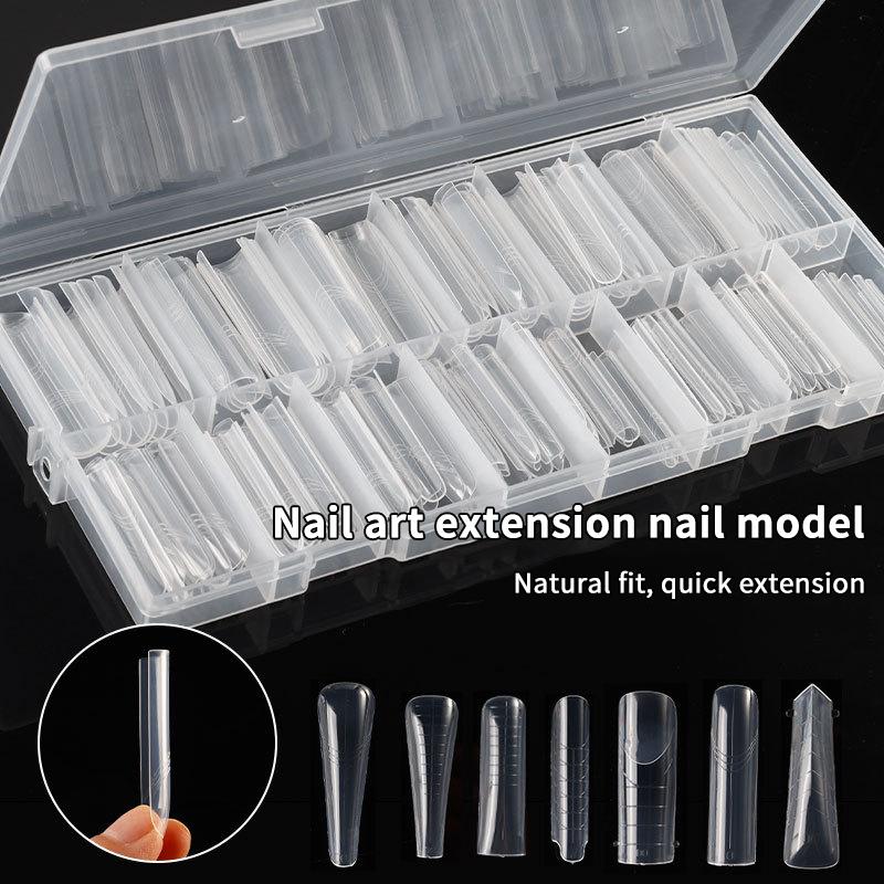 150Pcs Coffin Shape Sandwich Nail Forms Natural Clear No-Trace Nail Art Tips With Auxiliary Line Almond Shape Nail Tips