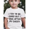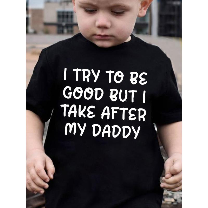 European sizes Children Summer Boys' Stylish Short-Sleeve Top Featuring The Phrase 'I Try to Be Good But I Take After My Daddy' in a Letter Element