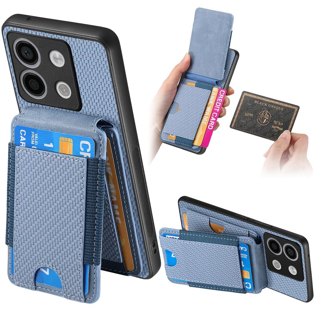 Vertical Cards Solt Wallet Carbon Fibre Case For Xiaomi Redmi Note 13 Pro 12 11 13T POCO X6 X5 Magnetic Stand Bag Pocket Cover