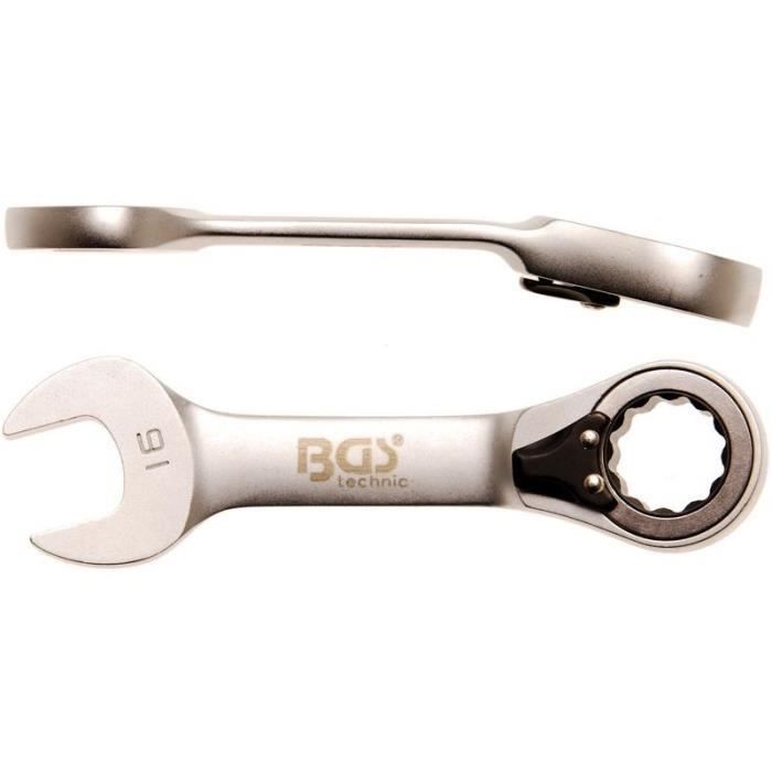 Clé mixte à cliquet - BGS TECHNIC - courte, réversible 16 mm - Acier chrome-vanadium - denture fine 72 dents