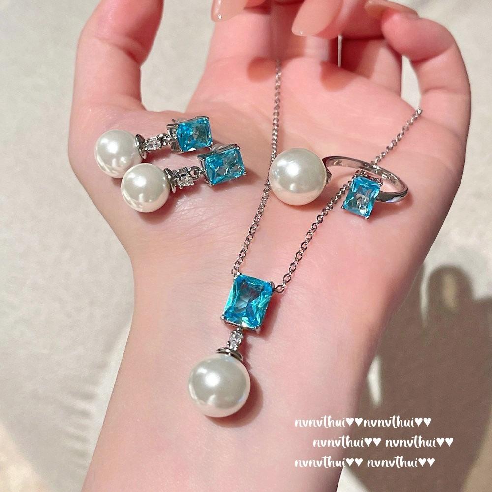 Jewelry Deep Sea Beads Sea Blue Treasure Topaz Santa Maria Bb Blue Necklace Tahitian Pearl Earrings Set